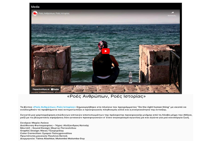 Short documentary on the refugee issue for the “Do the Human Right Thing” program by NGOs: Greek Council for Refugees, Diotima and IRC. Created under the “Do the Right Human Thing” initiative, aimed at highlighting the problems faced by refugee populations and the necessity of integration.